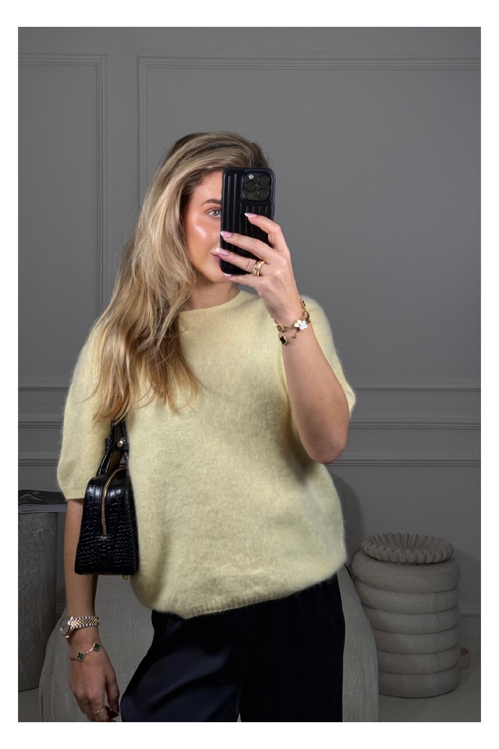 Lehký svetr s kulatým výstřihem a krátkými rukávy