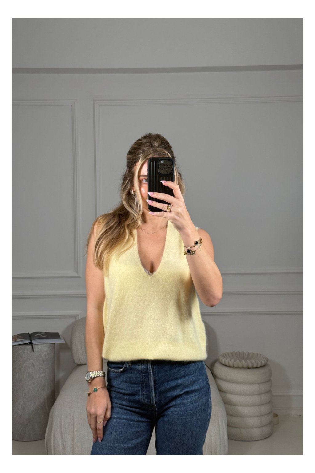 Stylová vestička bez rukávů s výstřihem do V