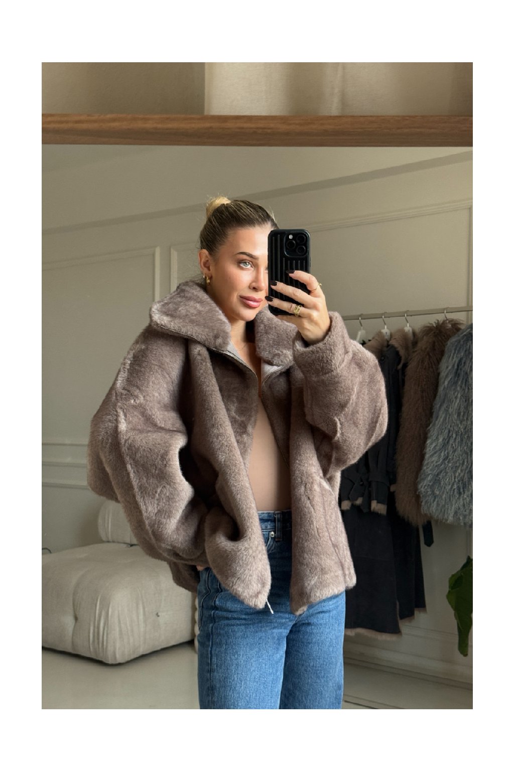 Krásný nadčasový kožíšek na zip s možností stažení v pase pomocí gumiček