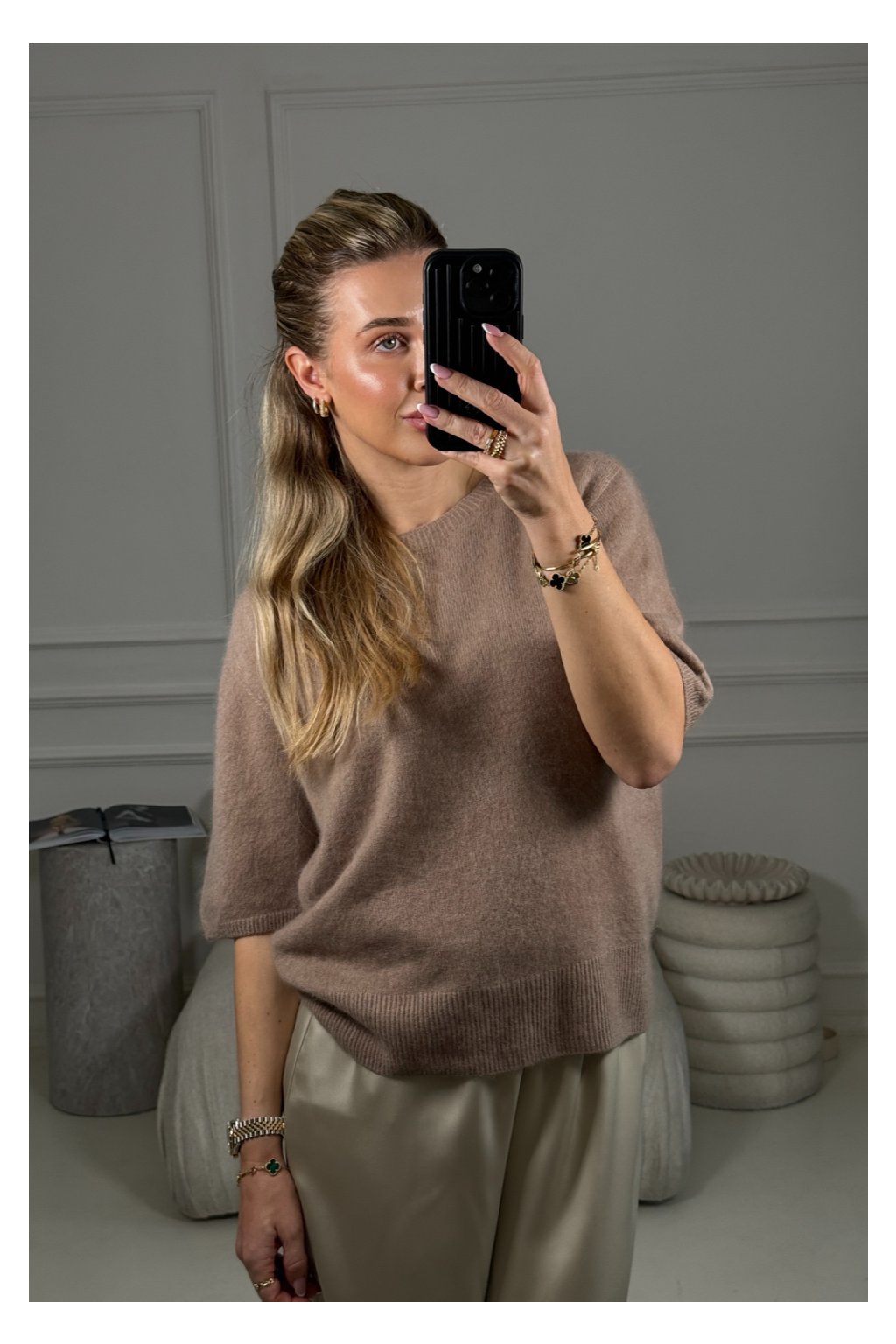 Béžový svetr s krátkým rukávem Olivia