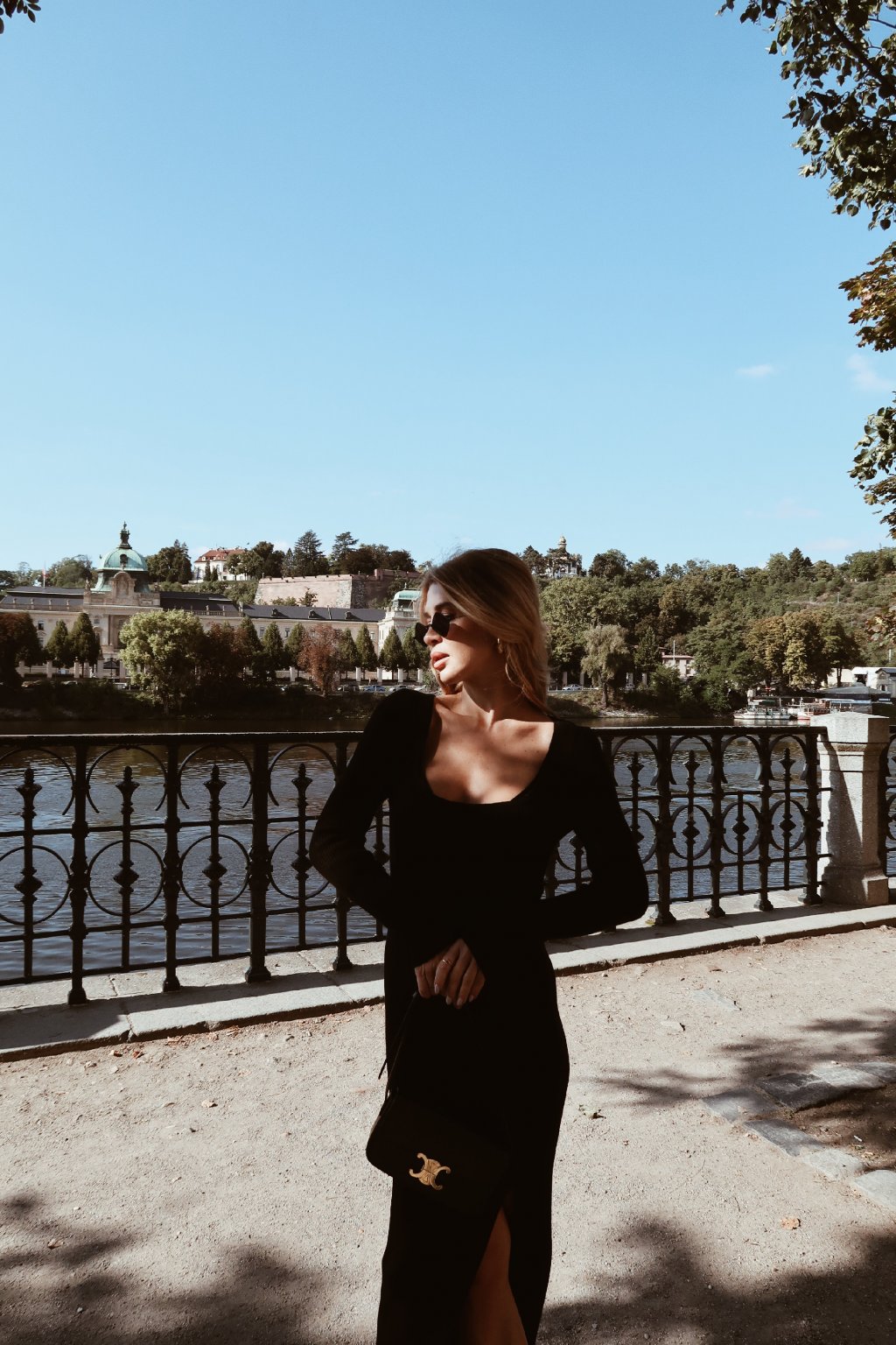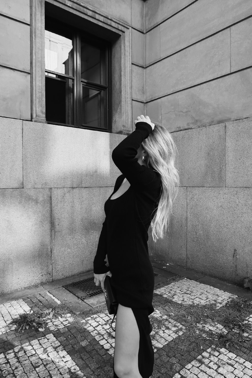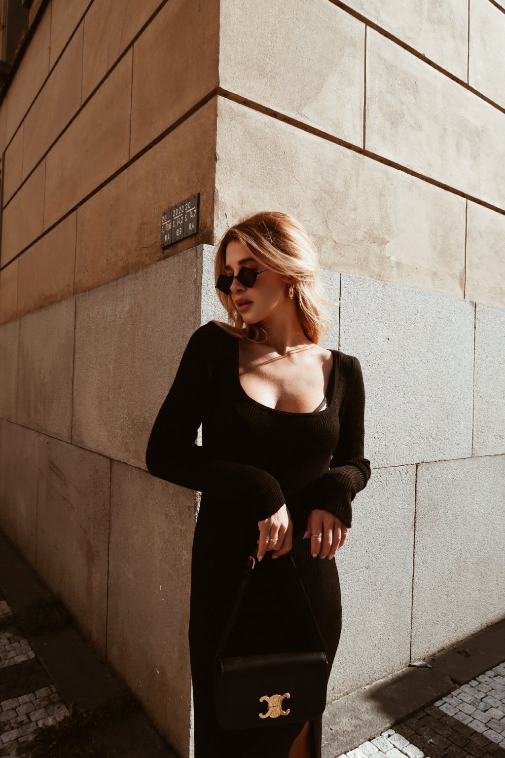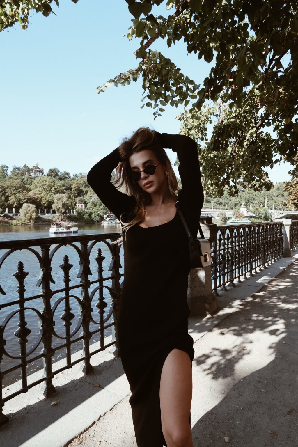 Nadčasové ženské šaty s dlouhými rukávy a rozparkem