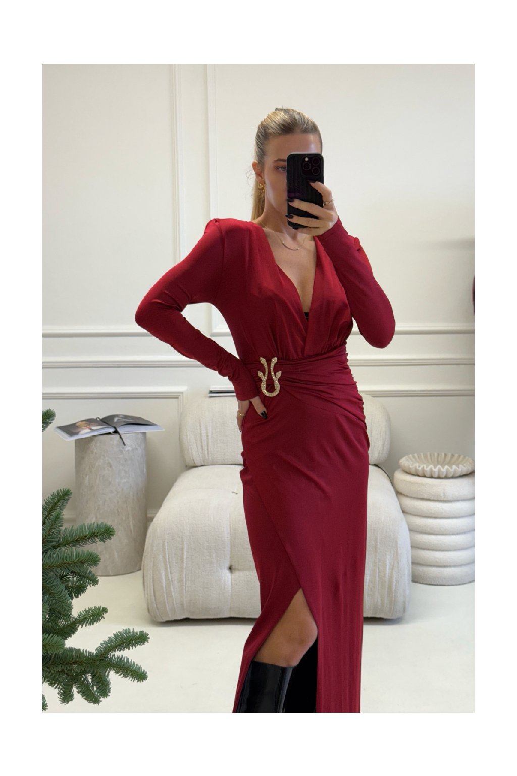 Nádherné dlouhé šaty v hlubokým výstřihem a broží