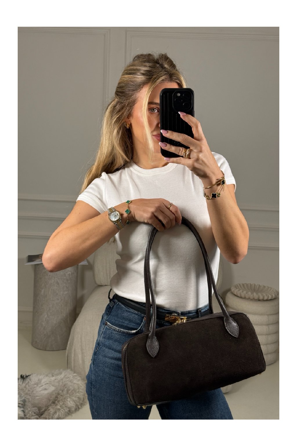 Čokoládová kožená kabelka Chocolat Suede