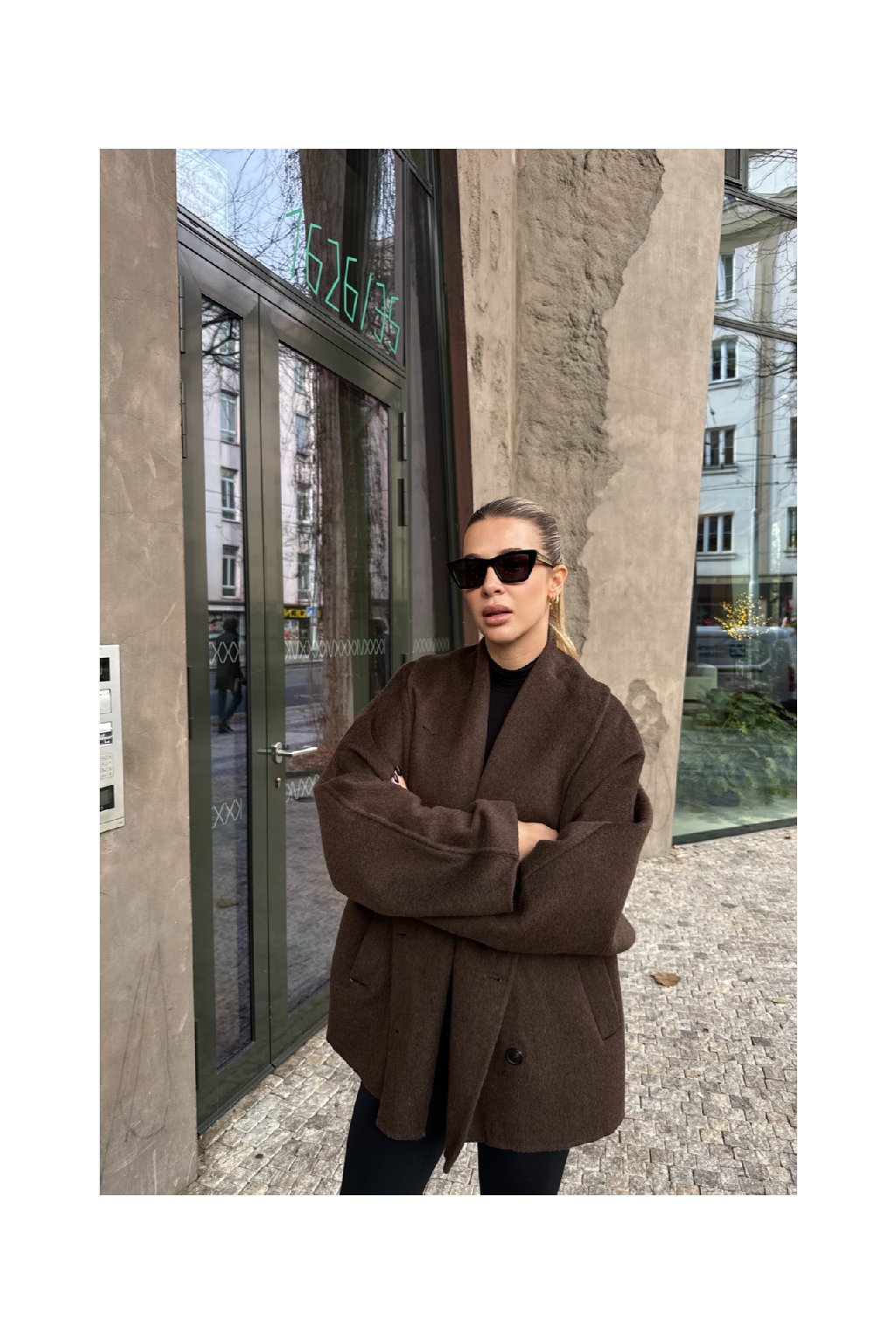 Nadčasový hnědý vlněný kabátek
