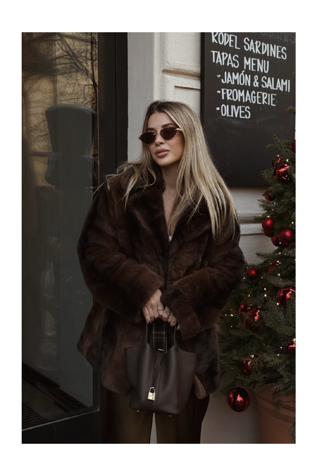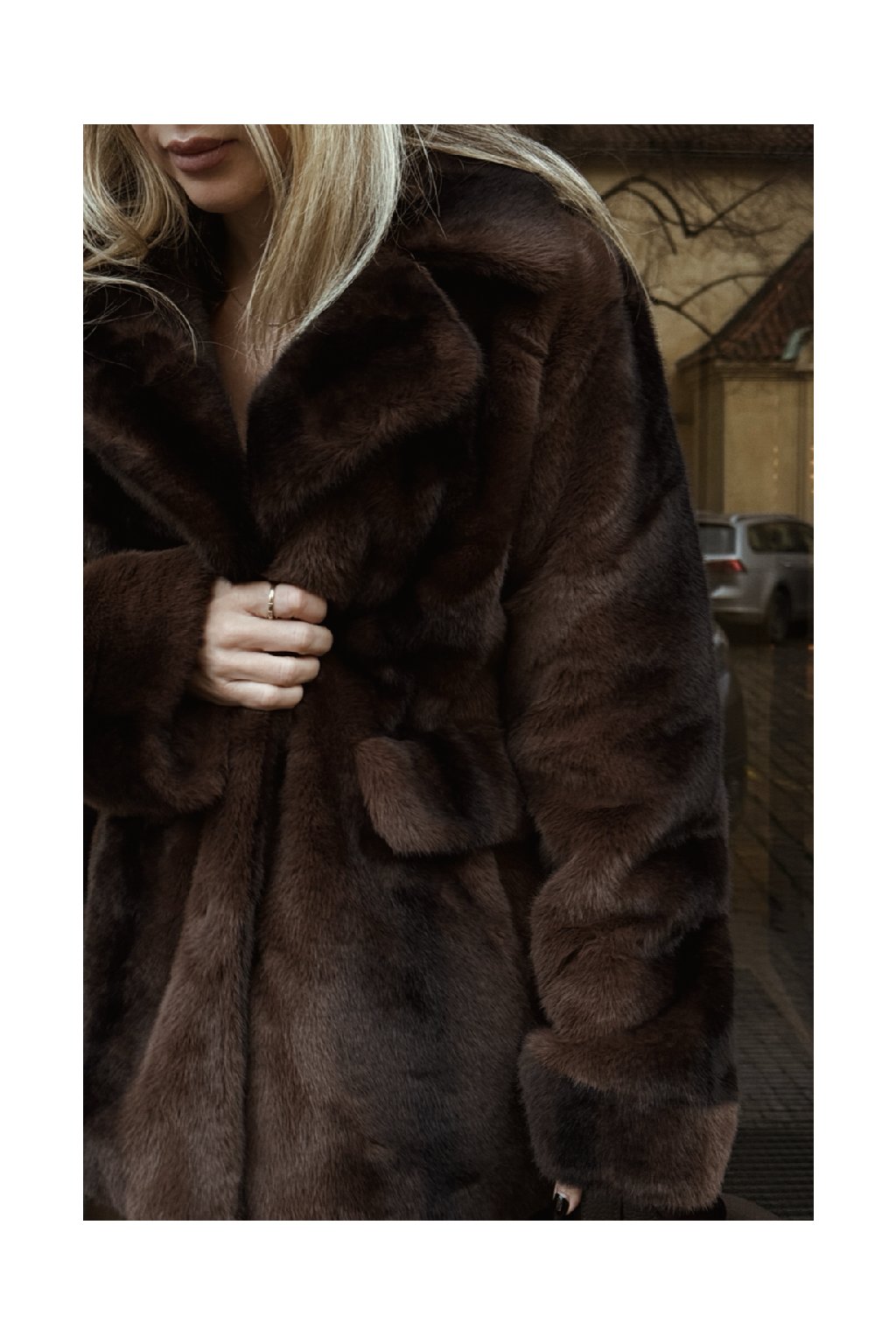 Nadčasový lehce žíhaný delší hnědý kožíšek