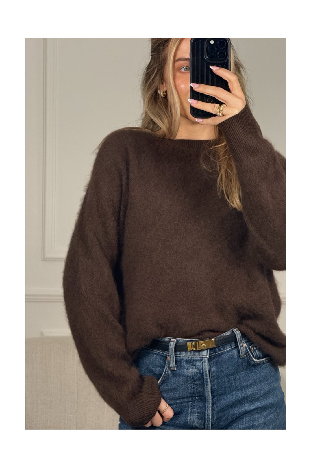 Hnědý čokoládový svetr s dlouhým rukávem Azra