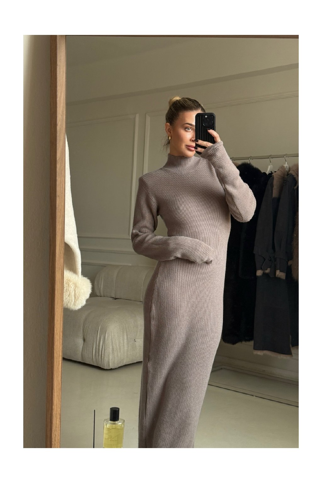Maxi šaty s vycpávkami v ramenou v barvičce Taupe