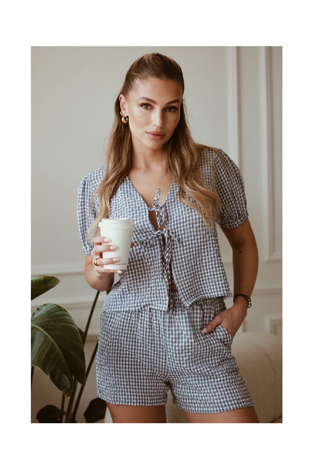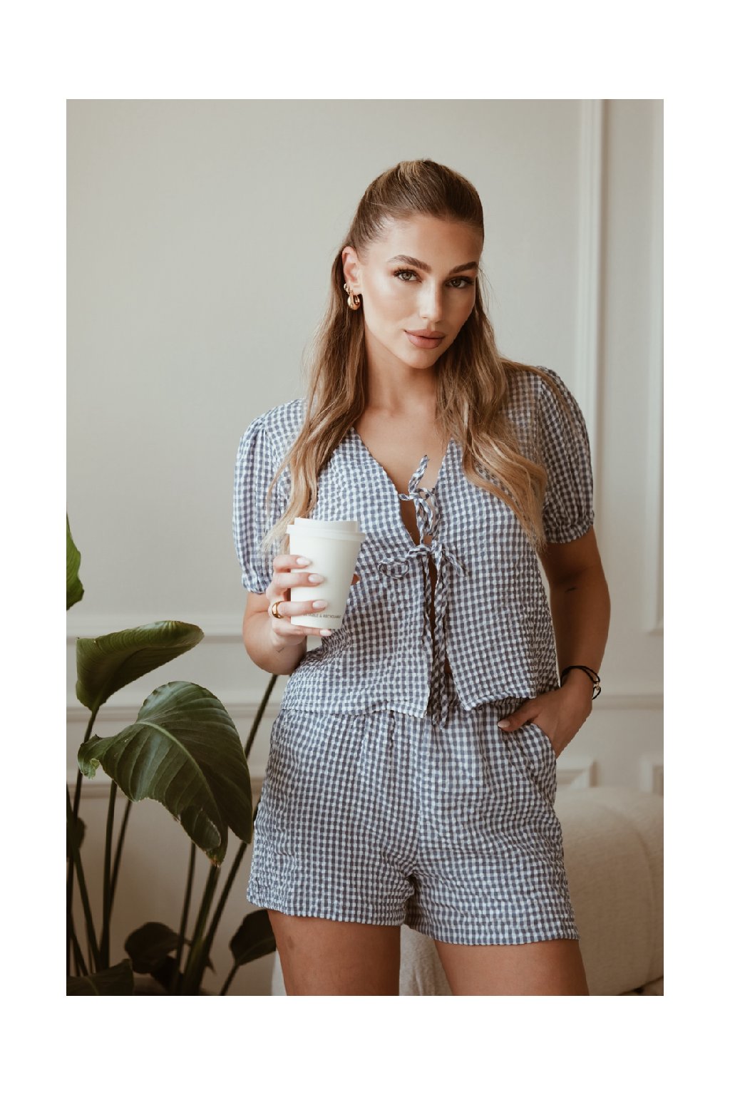 Modrý set skládající se z topu a kraťas je zárukou osvěžujícího vzhledu a maximálního pohodlí