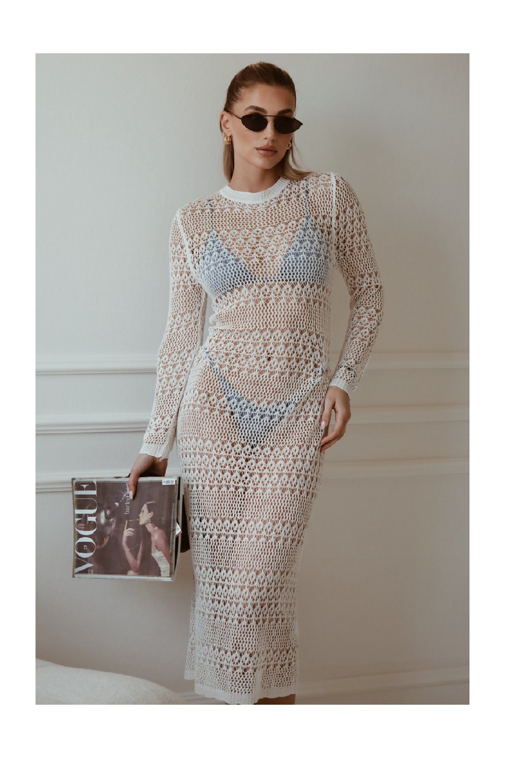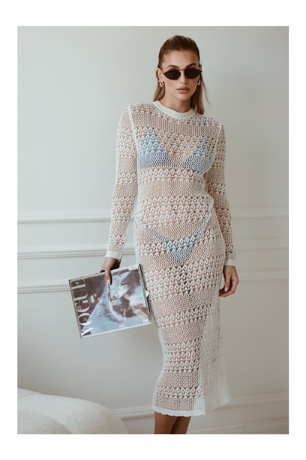 Pletené maxi šaty s dlouhým rukávem které perfektně ozvláštní každý outfit v beach clubu i ve městě